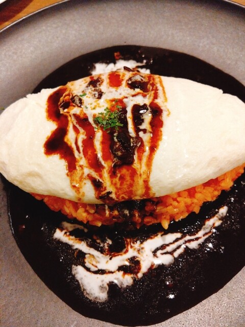 白いキャンバスに特製ソースで仕上げる白いオムライスは必食!