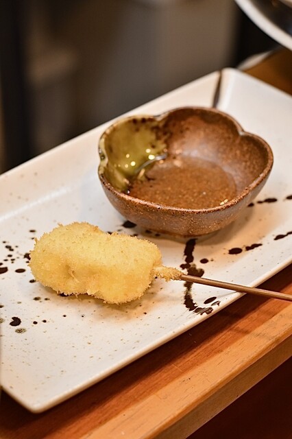 前々から気になってた密かに評判の良いお店❗️✨ 店内に入るとカウンターメイン。 割烹着を着た女将さんが切り盛りしています✨ 【おまかせ串揚げコース】10串3000円 2... 詳細を見る