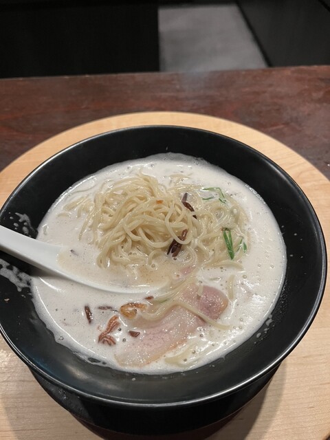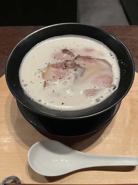 グッドネイチャーステーション2階にあるお店。他のお店は予約のみだったりで敷居が高い感じですが、こちらは券売機で券を購入、平日13時すぎ、特に待ち時間もなく入れました。 注文は、トリュフ香る中華そばと追加ワンタン。すぐに着丼し、一口目はスープから。 鴨、鹿、地鶏、豚、ドライトマト、ポルチーニ、椎茸... 詳細を見る
