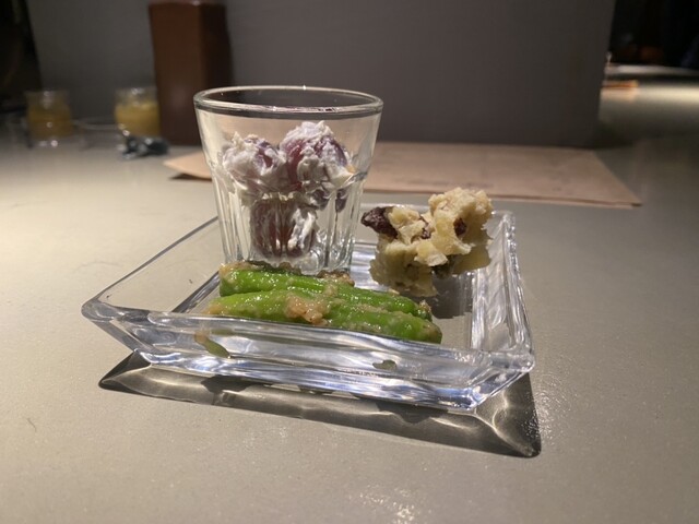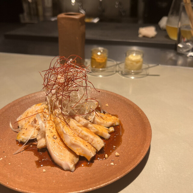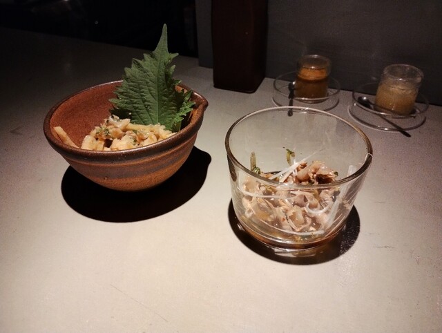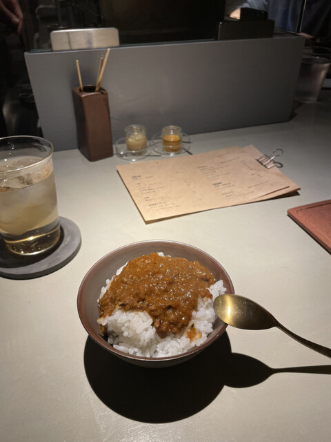 初めての訪問。鶏皮なめろうや砂肝皮でビール飲みつつ、おまかせで10串ほどお願い。どれも上品な串だったが、ハラミはぐうっとパンチのある味で美味かったなあ。自家醸造というワインも合わせつつ、静かにゆっくり...