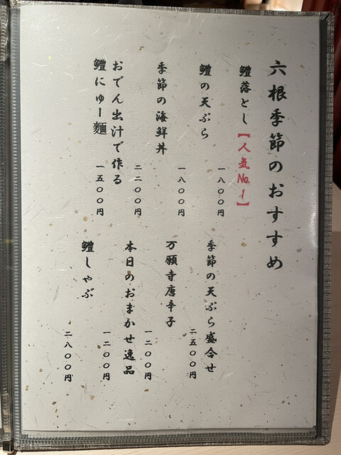 | ジャンル | おでん、うなぎ、居酒屋 |