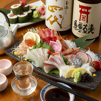 全国各地の新鮮な魚介と、約60種の豊富な日本酒が自慢◎
