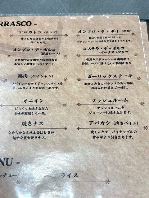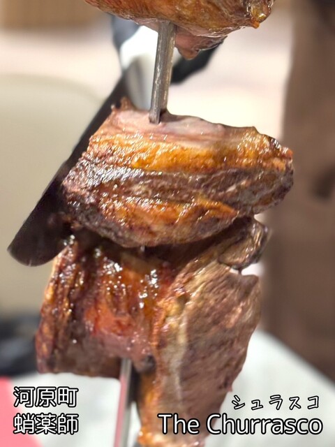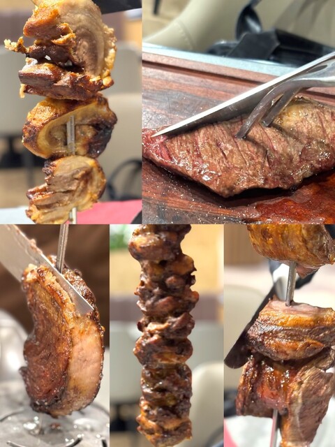 ✍️シュラスコ‥ブラジル生まれの肉料理。牛豚鶏等の肉の塊を串に刺してじっくり焼き上げたもの