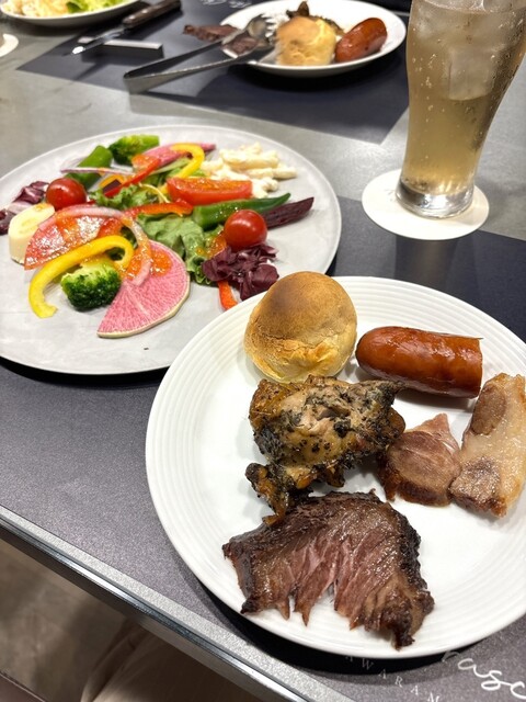 途中でサラダをはさみながら、何とか一周全部食べれました。ボリュームはなかなかあります。卓上に置いてもらう2種類のソース(ワインベースと野菜ベース)が両方美味しくて、じっくり焼いたお肉にちょうど良かったです。