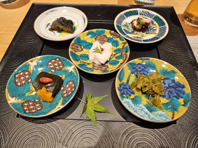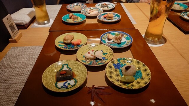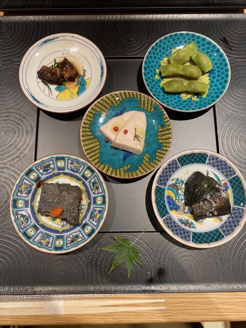 おばんざい(枝豆、蛸の柔らか煮、鴨肉、胡麻豆腐、カプレーゼ)