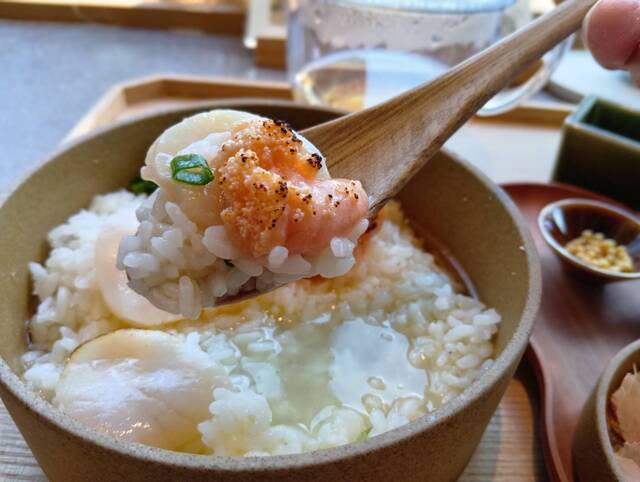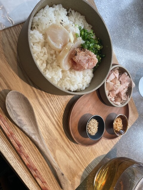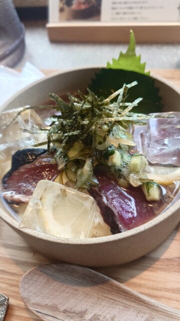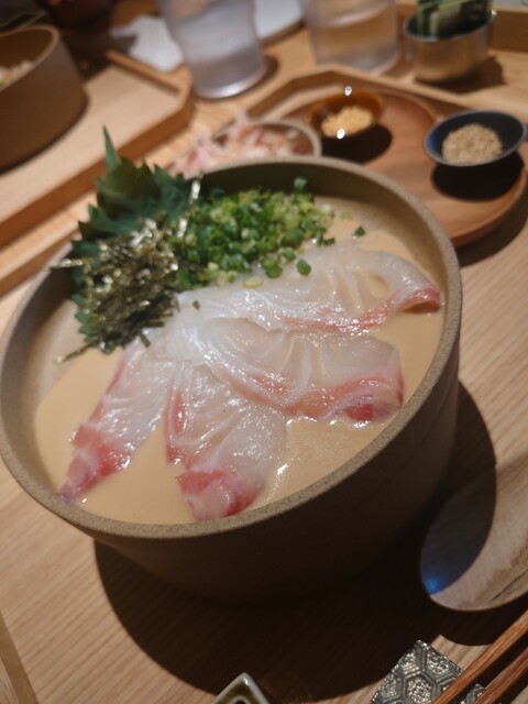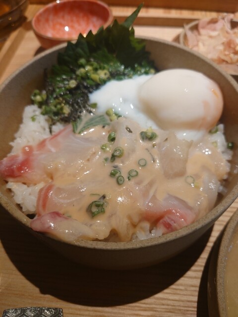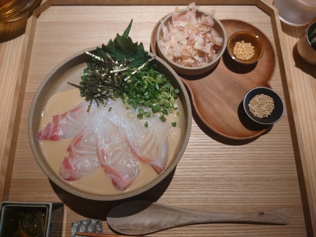 海鮮などが乗ったご飯の上に出汁をかけて 出汁茶漬けとしていただくお店。 今年の春頃にオープンしたとき経営者がこのお店の壁の模様が発酵に合わせて作ったと隣の席で言っていたのが... 詳細を見る