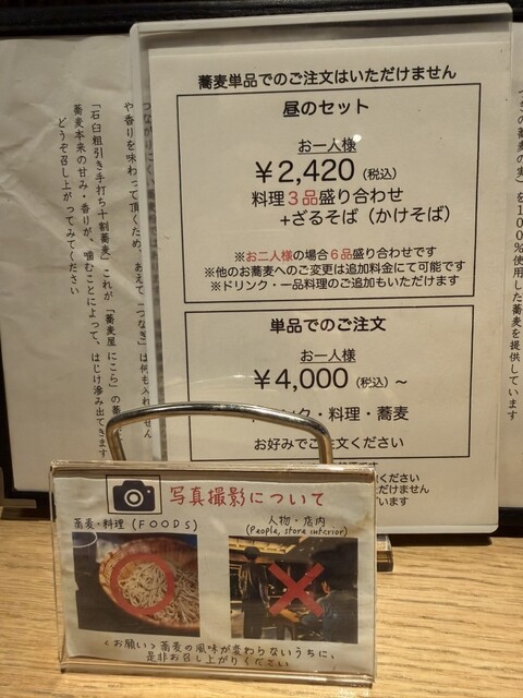 お蕎麦1人1品、5000円以上頼まないとですが、どれ頼んでもおいしくて満足できると思います。