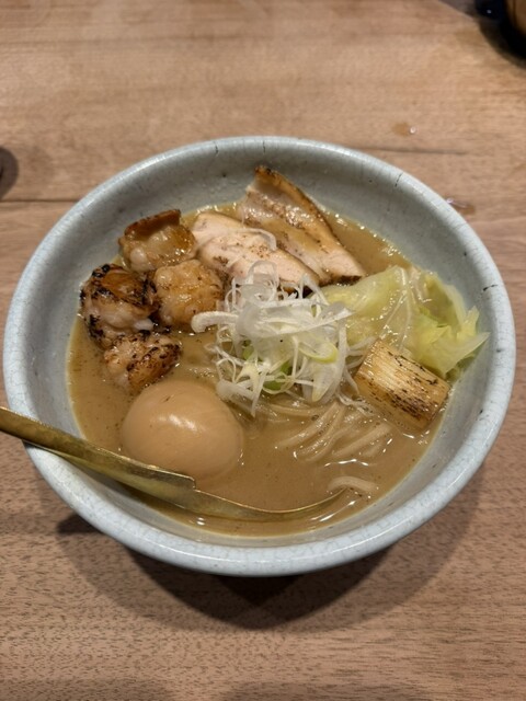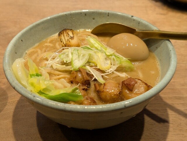 まずスープをひと口。魚介の旨みがふわっと広がり、そのあとから動物系のコクがやさしく追いかけてくる。濃厚すぎず、け...