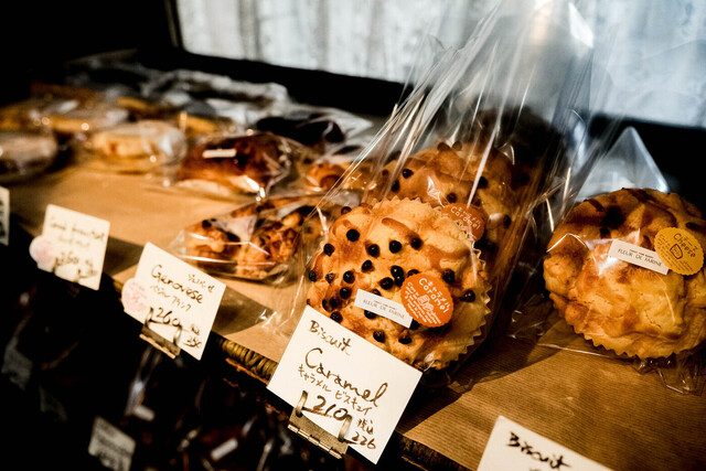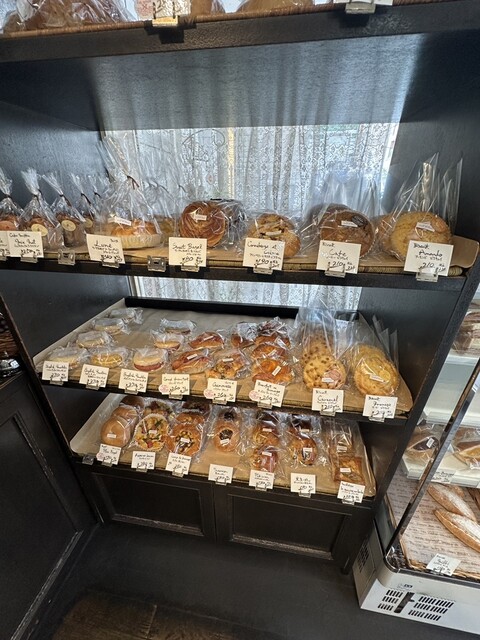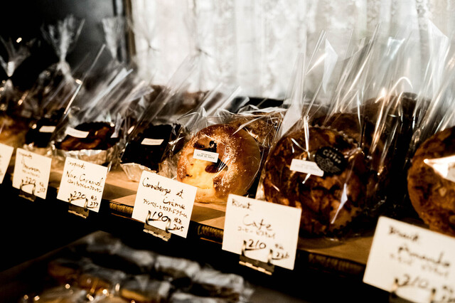 デニッシュ系(クロワッサン、フルーツデニッシュなど)が特に豊富で、彩り豊かなサンドイッチも人気。