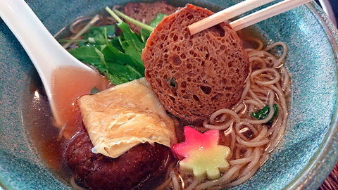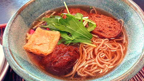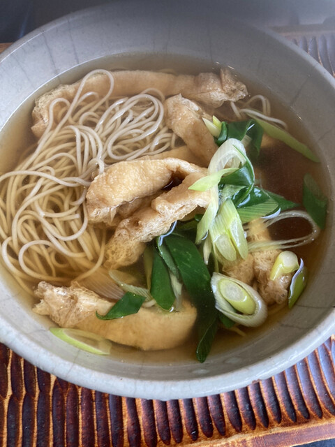 今日のメニューはあっさりと、きつね衣笠蕎麦にしました。