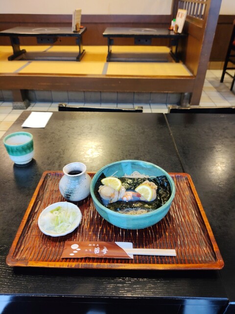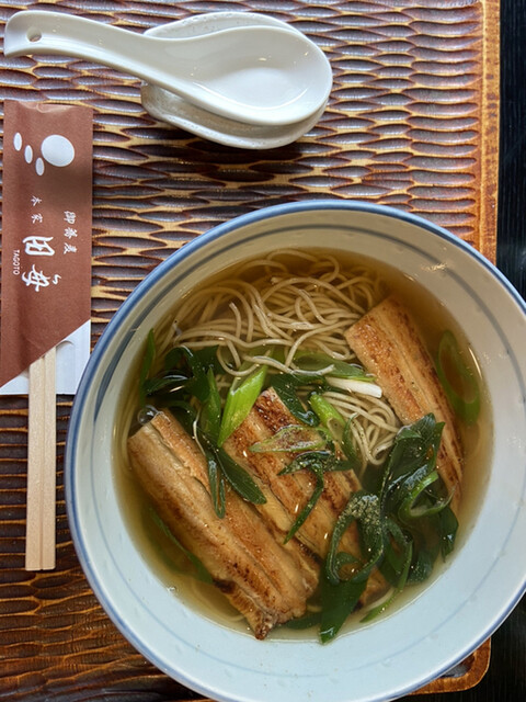 田毎蕎麦を頂きました。蕎麦は細めで、出汁もいい感じ。日曜日の朝11時頃で空いてました。めちゃくちゃ美味いとは思いませんでした。
