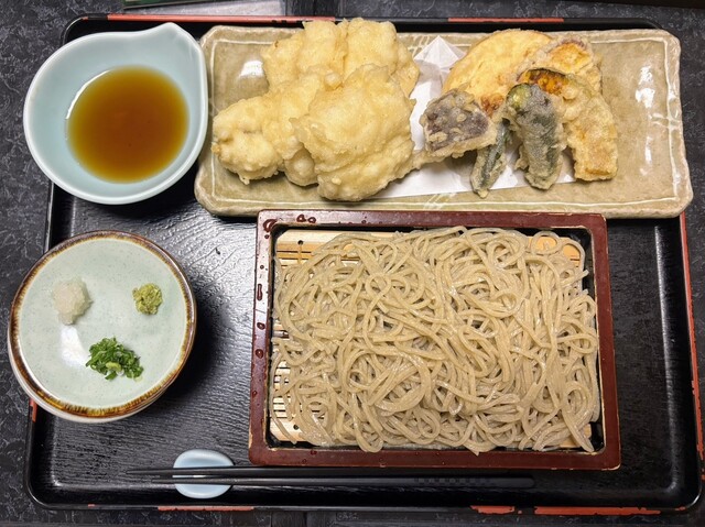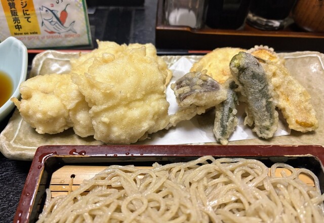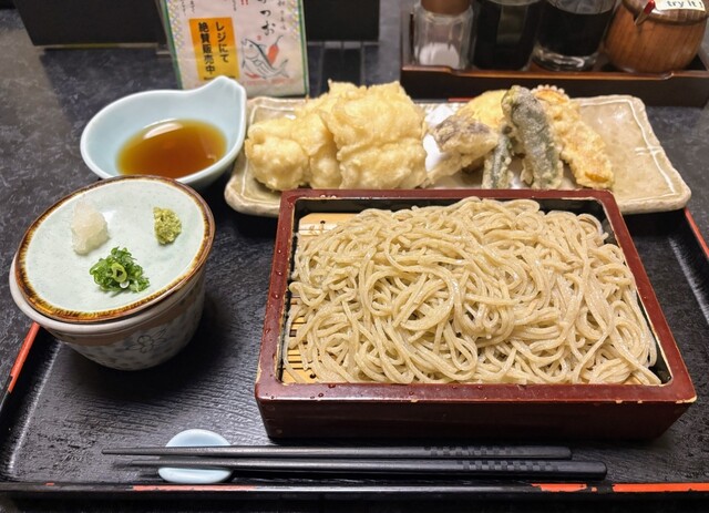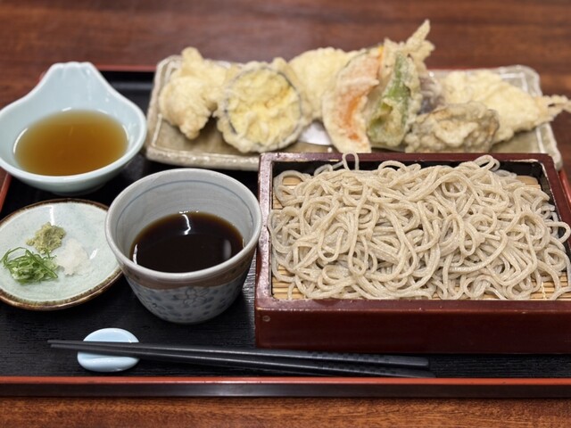 本日の注文は ◉唐船そば(冷やし選択) 冷やし二八蕎麦、唐揚げ、だし巻き、野菜 ◉ミニ天丼 海老フライ、茄子、パプリカ ブロッコリー、ジャガイモ ・... 詳細を見る
