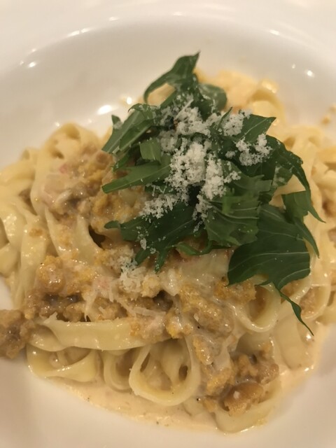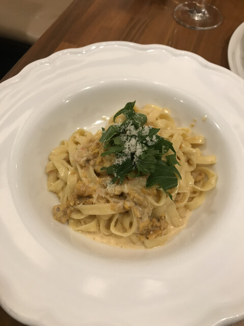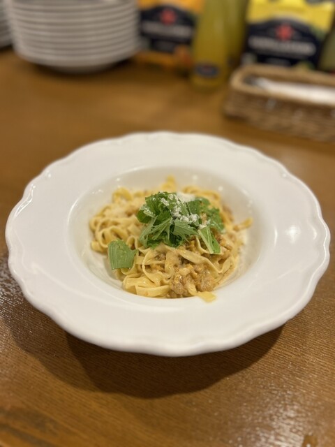当店の人気メニューは生ウニのクリームソースパスタです。