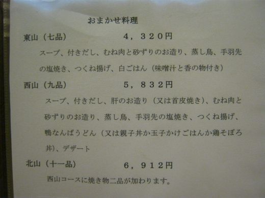 おまかせ料理の東山コース、西山コース、北山コースを |