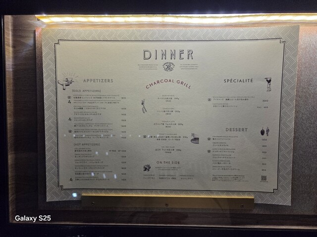 この日のディナーメニュー。私達はコレにアラカルトからもう1品加えてみた。