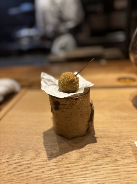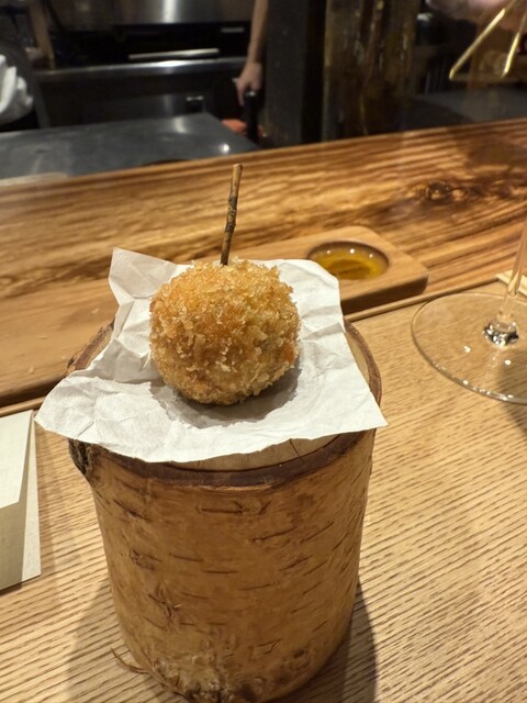 銀杏と肉詰めにオリーブでコーティングして揚げたコロッケ。