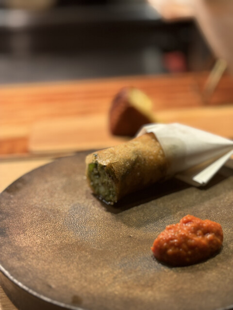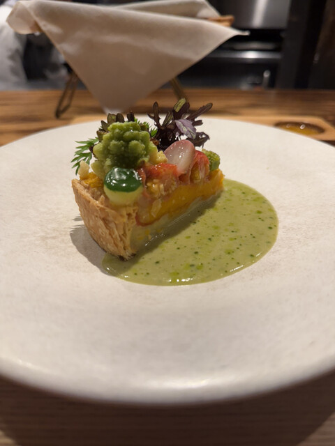 食べ歩き旅6日目のディナーで初往訪。今回は食べログで予約しました。店内は天井が高く至るところに緑が配置されとても居心地が良さそうな空間です。シェフも笑顔が素敵で絶対良い人そうな方です。
