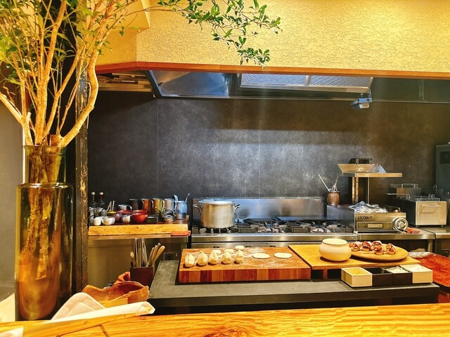 カウンター+テーブル席あります。店主は感じの良いイケオジです。カウンターでお話しながら調理するスタイル。さすが京都ならではの和食とイタリアンのいい所取。