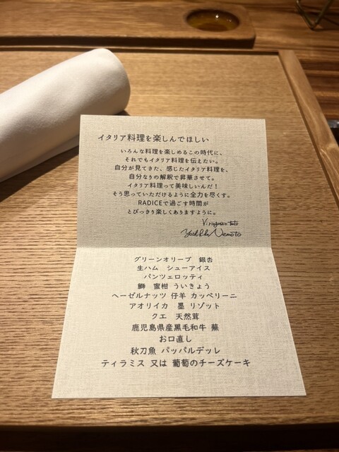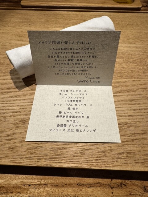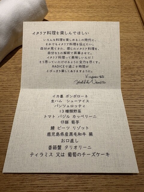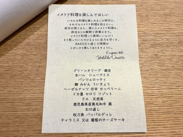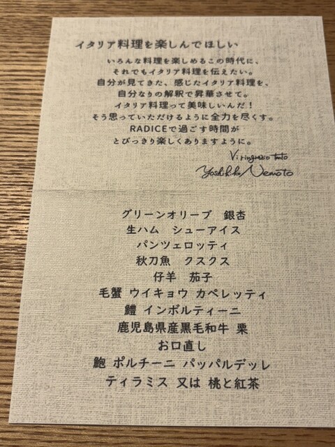 京都は京野菜にこだわったイタリアンが多い印象ですが、RADICEさんは和イタリアンと一線を画する本場にこだわっているのが特徴。