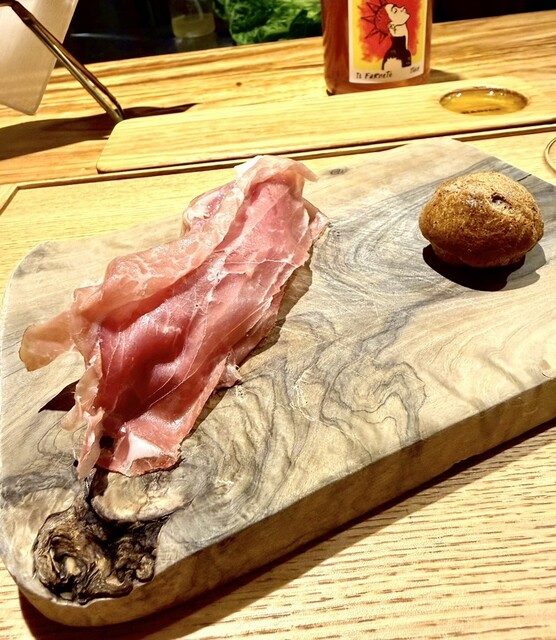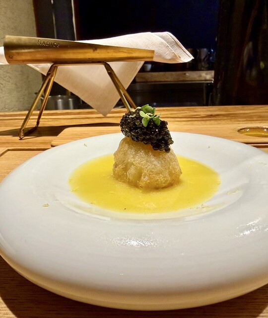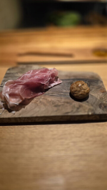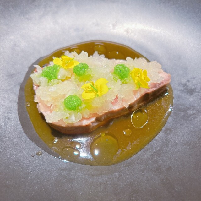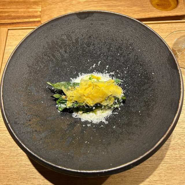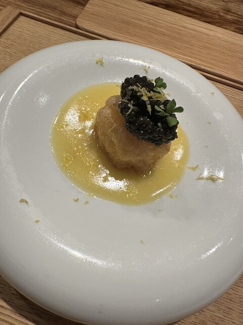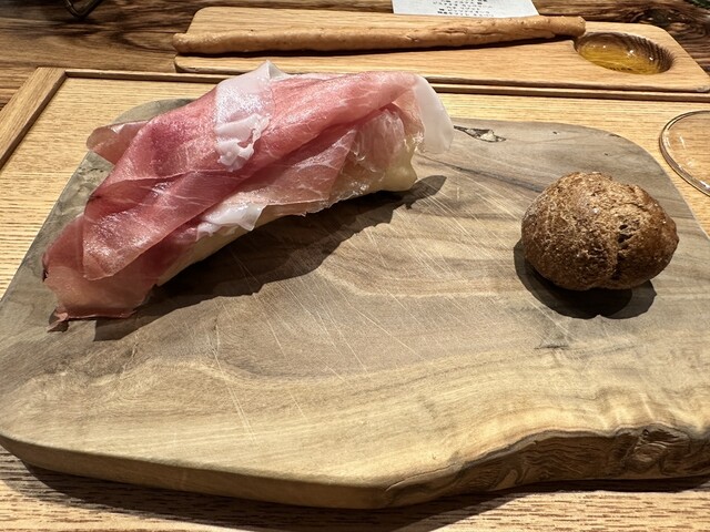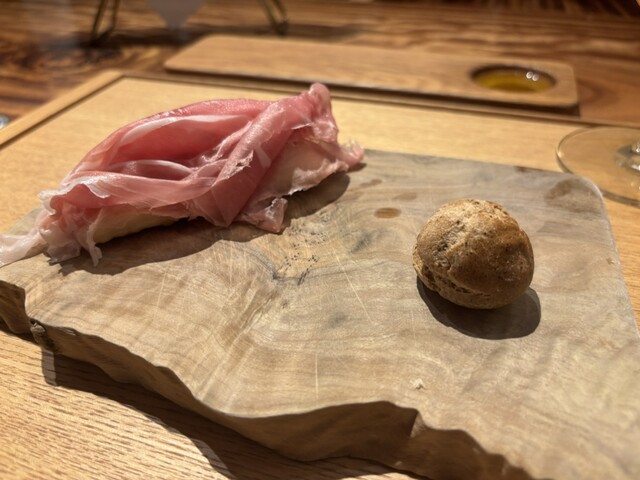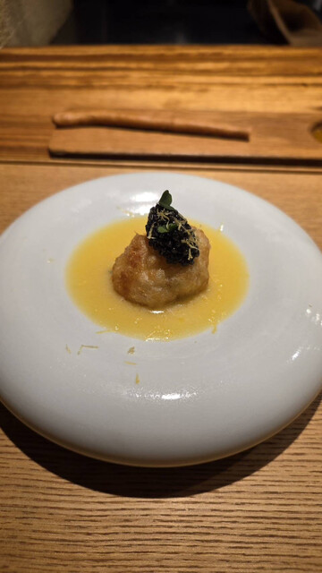 最初の月光百合根の一品から生の月光百合根(シェフ曰く柿のような甘みがありながら、雑味や土臭さが全くなかったです)、生ハムとシューアイス、シラスとジェノベーゼが揚た生地と相性抜群のパンツェロッティ、八朔やクスクスのサラダと中盤までは少しずつ食が進...