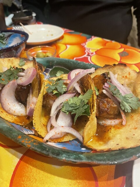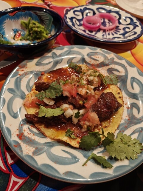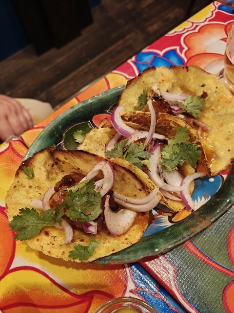 メキシカン「マキシモ」に初訪問。 頂いたもの ☑️タコス ・牛ハラミ(450円) ・豚タン(400円) ・エビ&アボカド(450円) ☑️チキンのファヒータ(8... 詳細を見る