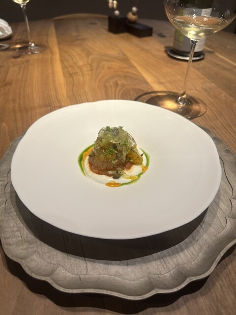 二回目の訪問でしたが、今回もやっぱり美味しい。今回は三種のワインをペアリングでいただきました。ワインもそれなりには美味しかったですが、やっぱり料理が何と言っても最高です。前菜から最後のデザートに至るま...