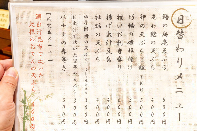 同じビルの(THISIS)SHIZENでブーケアイスをいただいて、ディナーも食べようとビルの中を散策していたら見つけたのが天ぷら 天寅 新風館店になります。