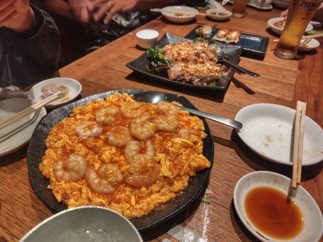 麻婆豆腐が美味しかったです。卵エビチリは卵が多すぎて、エビが4匹くらいしか無かったので残念でした。金曜夜だからだと思いますが、周りのお客さんがうるさすぎて、友だちの話が全く聞こえず悲しい会となりました。