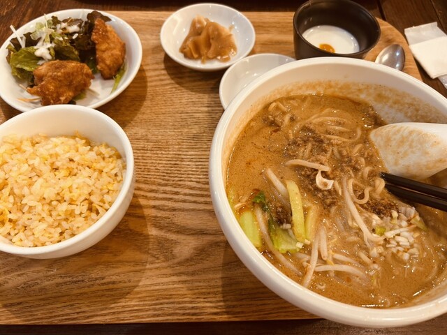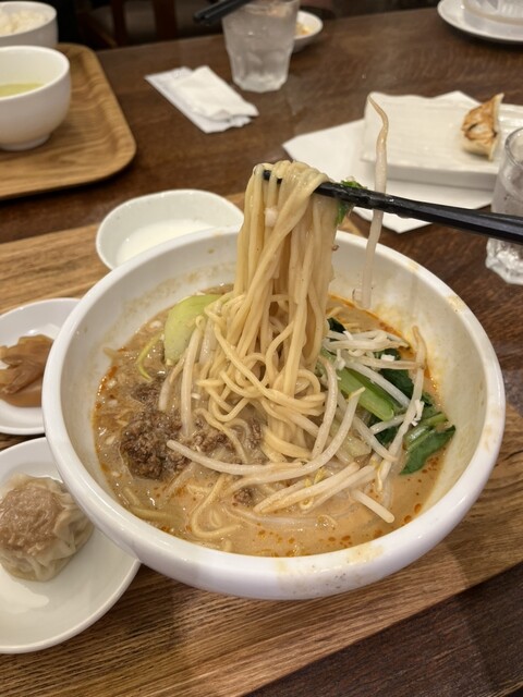 11時半の開店と同時に入店。ランチの中で坦々麺のセットを注文。坦々麺は白ゴマベースのクリーミーなスープ。セットの卵チャーハンや唐揚げはまぁ普通かな。デザートについて杏仁豆腐は本格的でクリーミーでおいし...