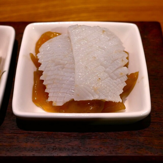 生姜で味付けしたアオリイカと最高級くらげ 歯応えがコリコリ音がして美味しい