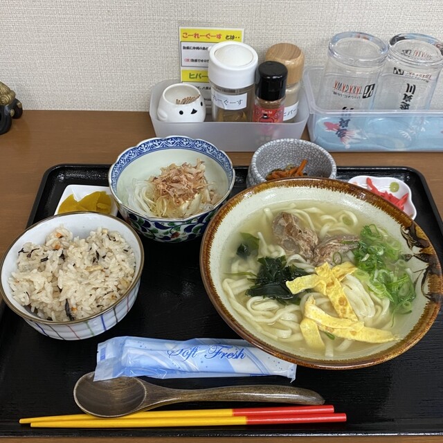 本日は今出川で仕事だったので、ランチタイムに伺いました。 こちらのお店オリジナルの亀せんそば じゅーしー他2品付定食 930円を注文。 定食の内容は沖縄そば、じゅーしー... 詳細を見る
