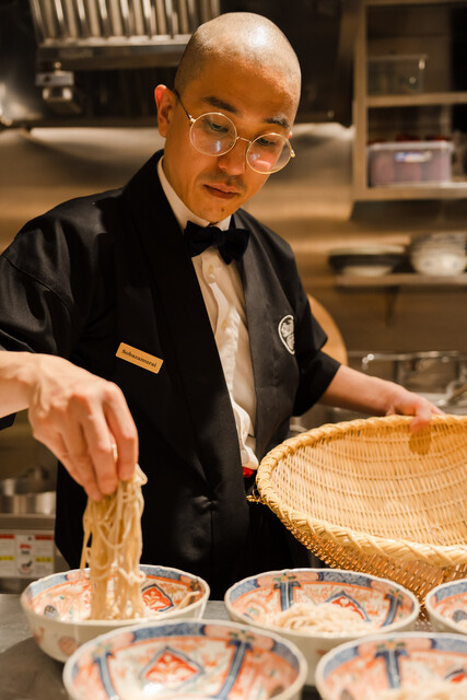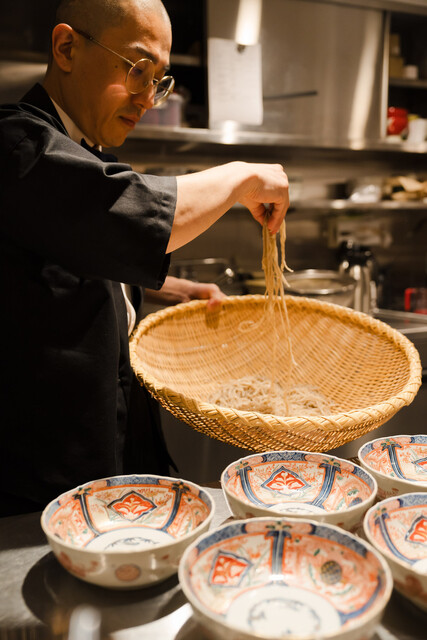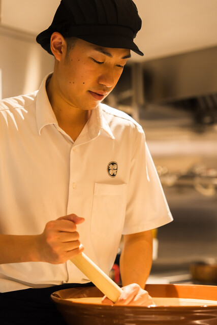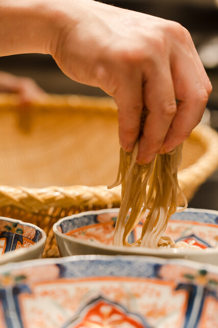 毎朝打つこだわりの十割蕎麦をご提供。一押しは、1日10杯限定の京鴨なんばんと鴨せいろです。夜は「夜の蕎麦三昧口福コース」もご用意。営業は朝8時~で、ランチはもちろん、朝ごはんのご利用もおすすめです。厳選した地酒も取り揃えており、昼夜問わずお楽しみいただけます。金箔画や盆栽を配した日本の伝統美を感じられる店内で、贅沢な時間をお過ごしください。