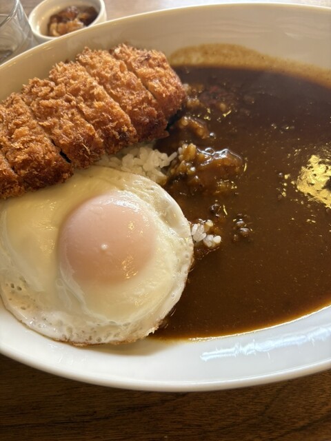 玉子サンド狙いで伺いましたが、店内のカレーの良い香りに負けてカツカレー目玉焼き乗せ...