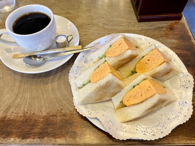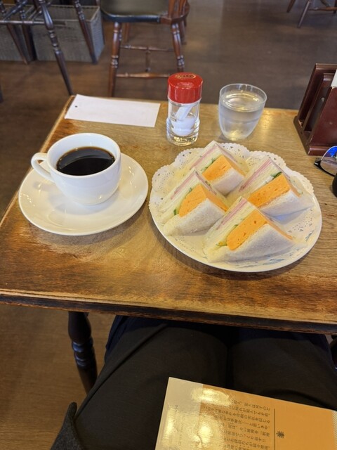 メニューはどれも美味しそうで迷いますが、玉子サンドフルサイズ(800円)とブレンドコーヒー(480円)を注文。セットで100円引きになり...