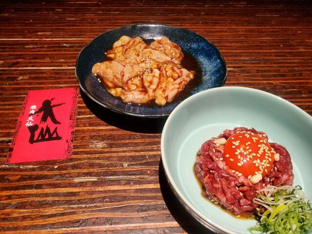 全国より厳選した黒毛和牛A5ランク牝牛を秘伝のたれで提供する【焼肉 大仙】。黒毛和牛の多彩な部位が堪能できる宴会向けコースもご用意しました。京と韓が融合したモダンな空間にはカウンター席のほか、BOX席や掘りごたつ式の半個室席を完備。直火で焼き上げた焼肉弁当はテイクアウトも承っております。大量注文も可能ですので、数日前までにご相談ください。