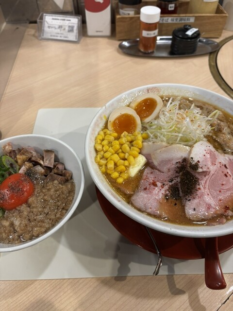 休日昼の初訪問です。14時頃の到着で先客は2組、空き席があり食券購入から待たずに着席できました。カウンター6席、4席テーブル、6席テーブルと席数は多くないので、ピークの時間帯は外待... 詳細を見る