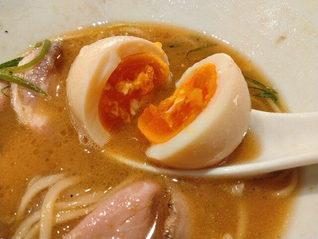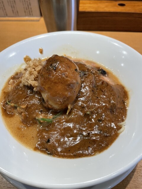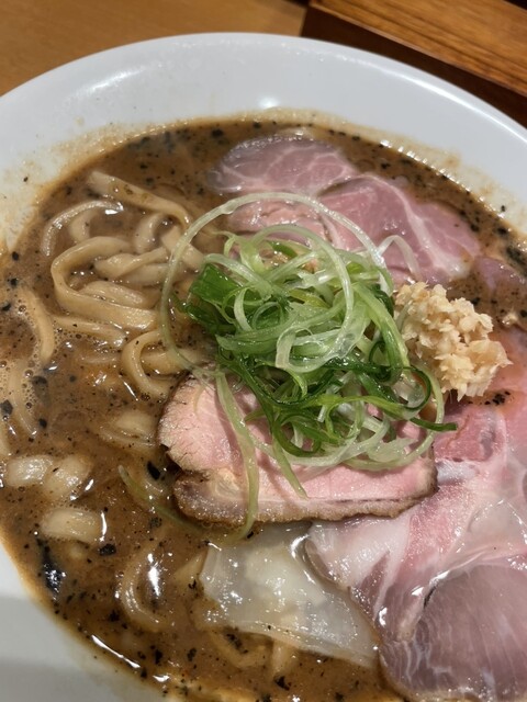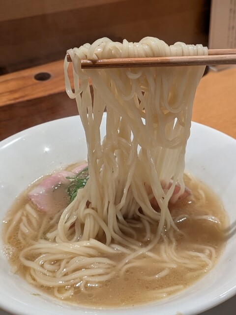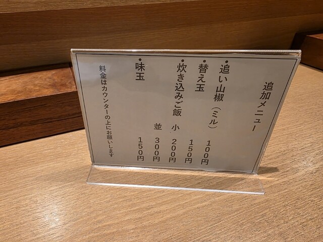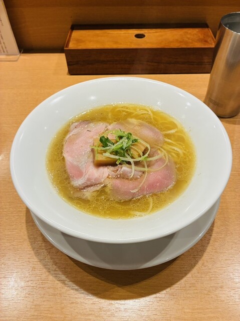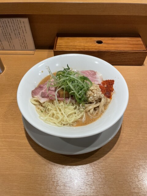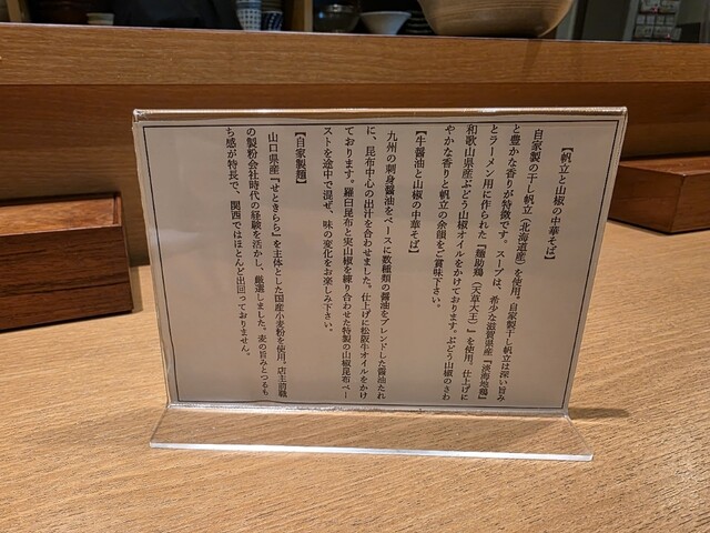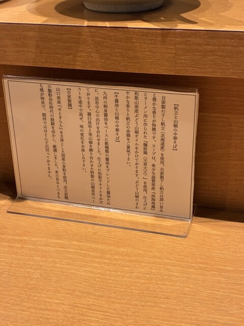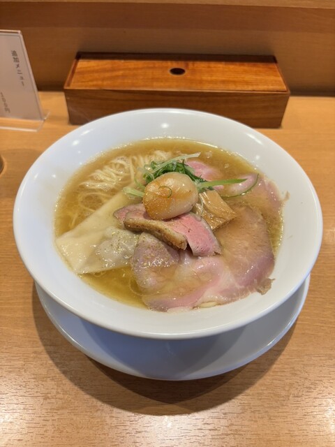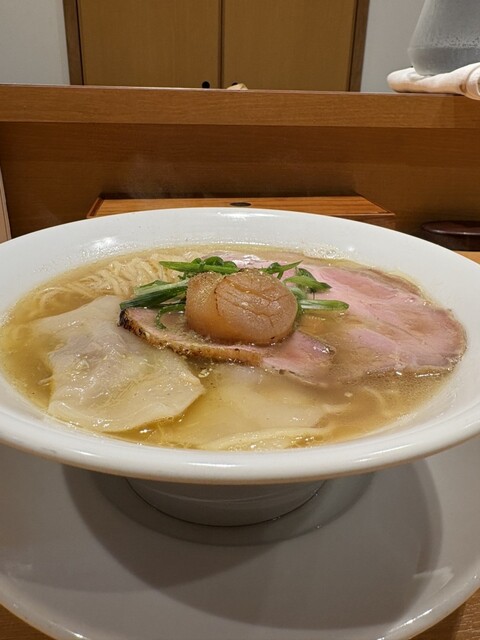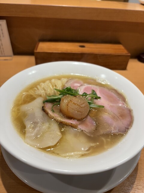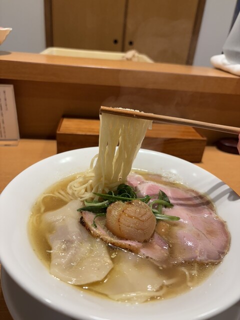 休日11:00ちょっと前にいって駐車場にとめられ、ギリギリ座れました!初めての方におすすめという帆立と参照のラーメンを注文。仕上げにぶどう山椒をかけて下さいました。
