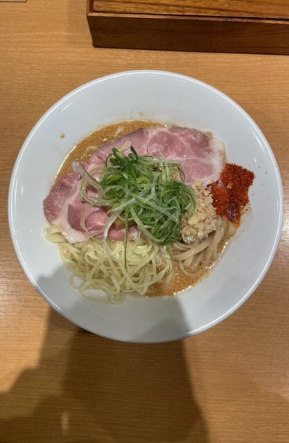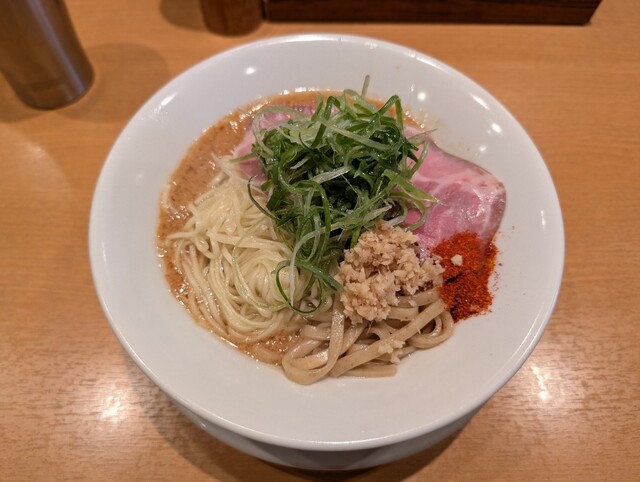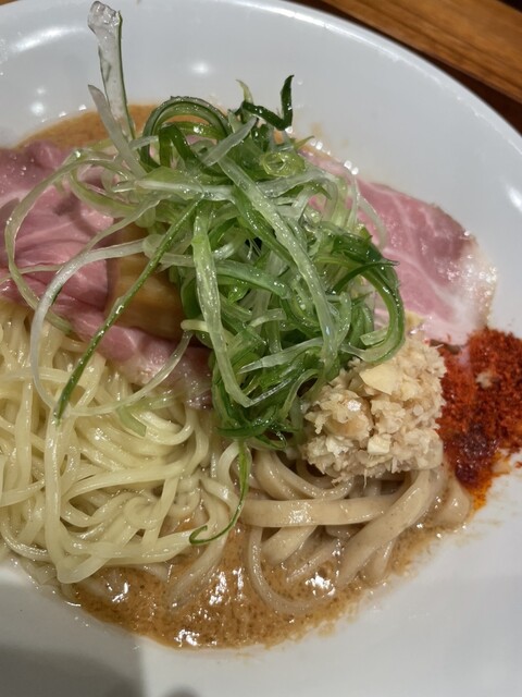 それでは「九条ねぎのあいもり辛味噌まぜそば」を。麺量は220gです。