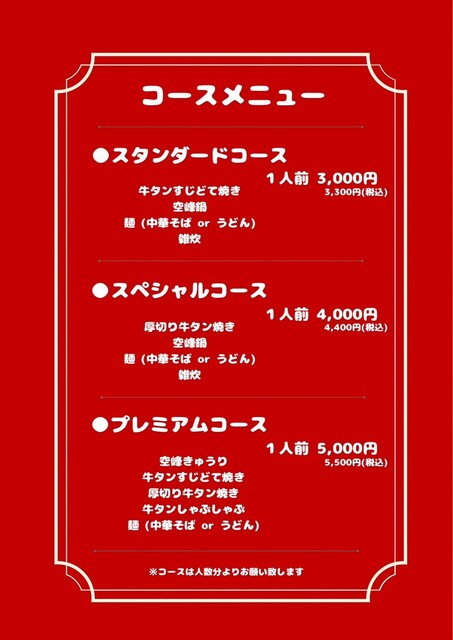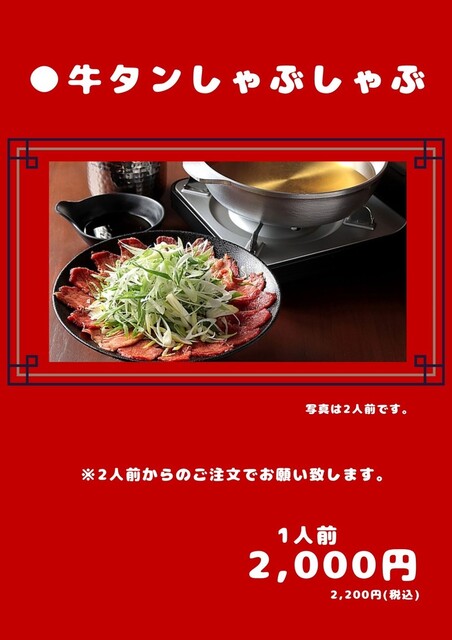 味噌ベースの甘辛いクセになる空峰鍋や、牛タンしゃぶしゃぶ、黒毛和牛すき焼き、厚切り牛タン焼きといった絶品牛タン料理が自慢の当店。おすすめ料理を揃えたコース3種類に加え、2H2,000円の単品飲み放題もご用意しておりますので、会社帰りの飲み会から各種宴会まで最適◎居心地の良さを重視した和空間には半個室完備。全室をつなげて大人数のご案内も可能です!貸切大歓迎ですので、お気軽にお問い合わせを◎