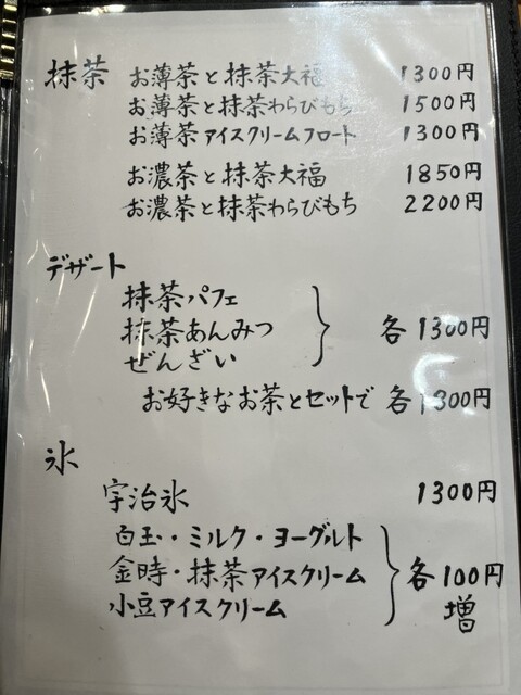抹茶パフェがとっても美味しいと聞き行ってきました。本格的なお抹茶の和スイーツメニューも沢山。お茶とのセットにしたのですが、お茶も本格的で高品質なものをおいてはります。どれにしようかわからなかったので、...