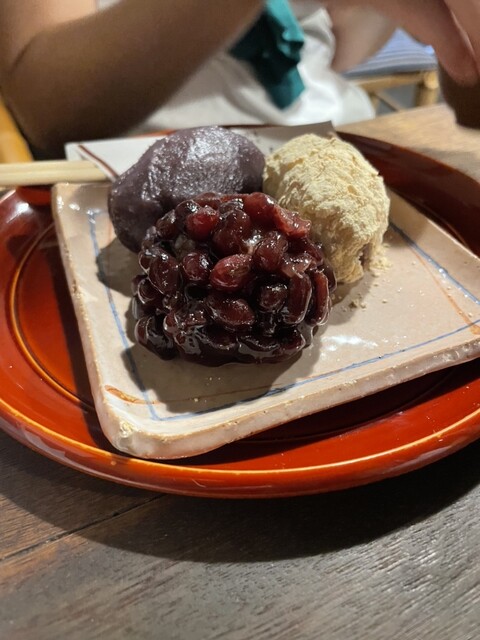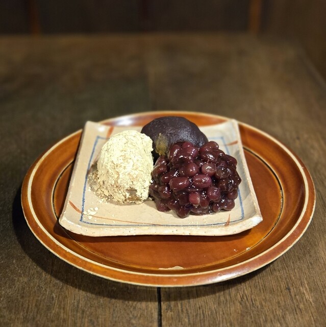 こしあん、つぶあん、きな粉の3種類が出てき...