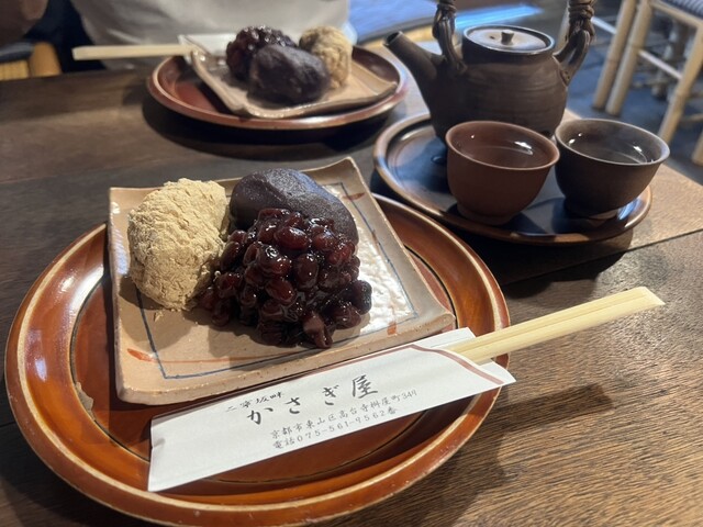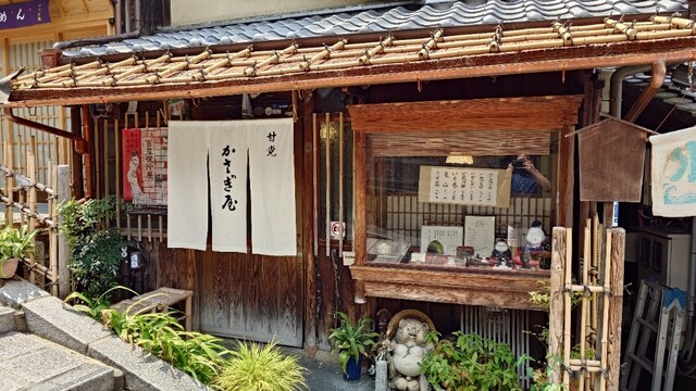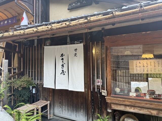 京都・祇園にある大正12年創業の甘味処「かさぎ」さんで、名物の「亀山」をいただきました。花見小路からほど近く、落ち着いた雰囲気の中で伝統の甘味が楽しめる老舗です。