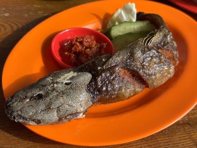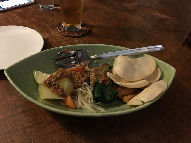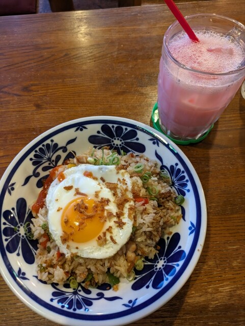 こちらのお店はメニュー数が非常に多いのが特徴です。料理名のところに簡単な説明も書いてあるので、それを見ながら選びました。正確な名前は忘れましたが、アボカドジュース、ナシゴレン、じゃがいもの...