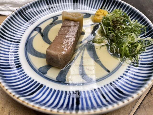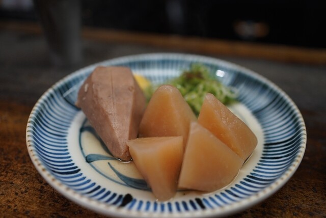 入店すると、白い上着に蝶ネクタイの初老男性がカウンター内にお2人いて、ピリリとした空気。さらに飲み物注文の後におでんを頼もうとすると「お待ちく...