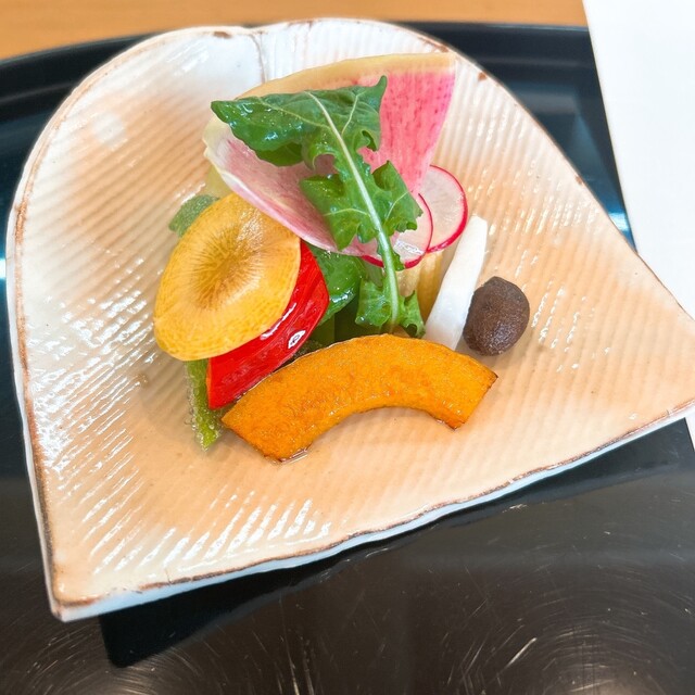 いろいろな野菜盛り込みからのスタートで、土瓶蒸しにお造り、変わっていて美味しかったのが子持ち鮎の骨抜き焼き寿司。鮎の骨はパリパリで噛めば噛むほど味がでて美味しかったです♪ご飯は本物の釜戸で!デザートはいろいろ選べるので迷っちゃいますよ(*´꒳`*)お腹がいっぱいじゃなかったら全種類食べたか...