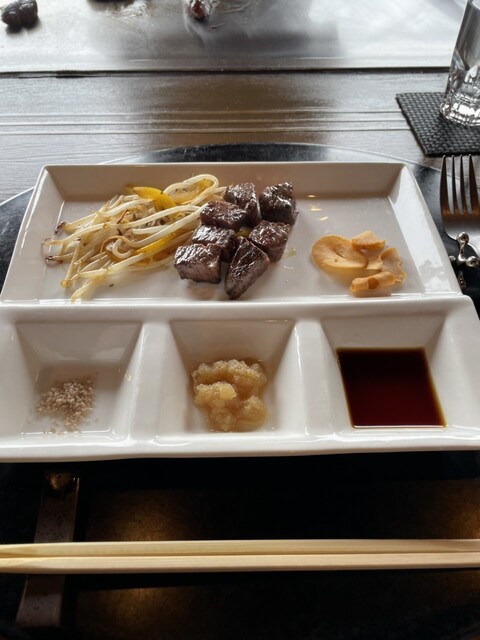 京都で誕生日会をした際に訪れました!! 予約をしていなかったのですが、タイミングよく入ることができてラッキーでしたが、席数がそんなにないので、予約したほうがいいように思います。 料理はA5ランクサーロイン肉のコースを選択。海老に関しては、大葉とカシューナッツのソースが美味しかったですね。お肉はもちろん柔らかく、ソースもお塩が2種、山葵、おろし出汁、ソースといろんな味が楽しめて良かったで... 詳細を見る