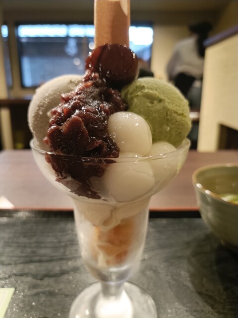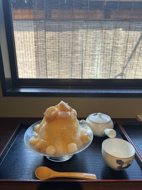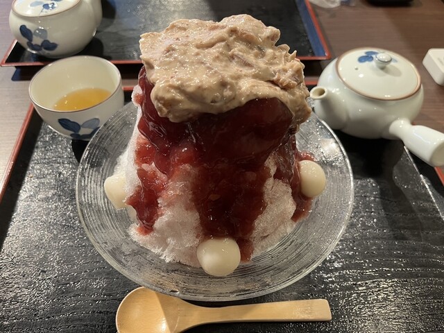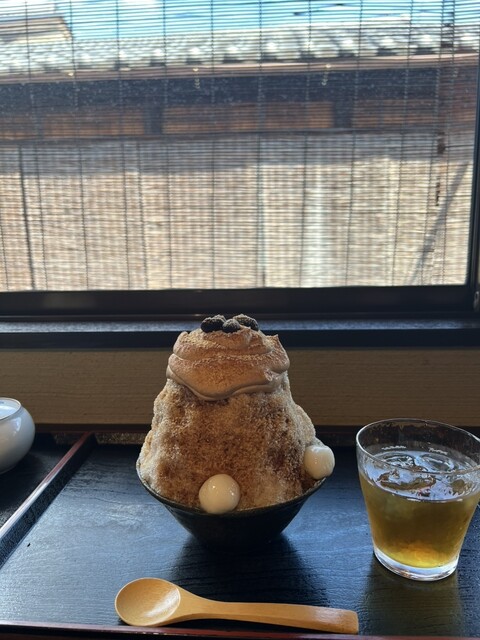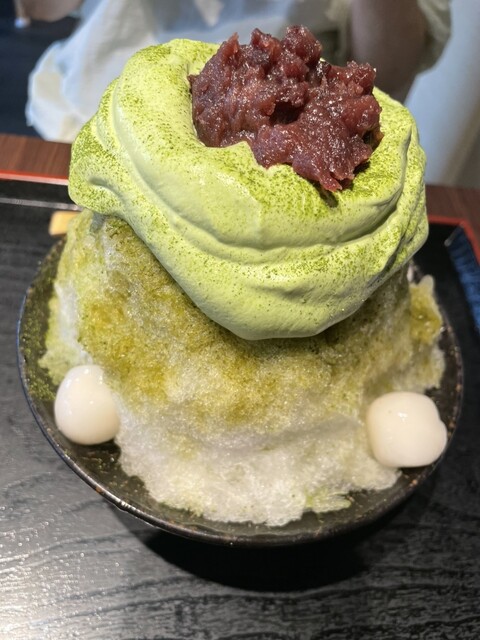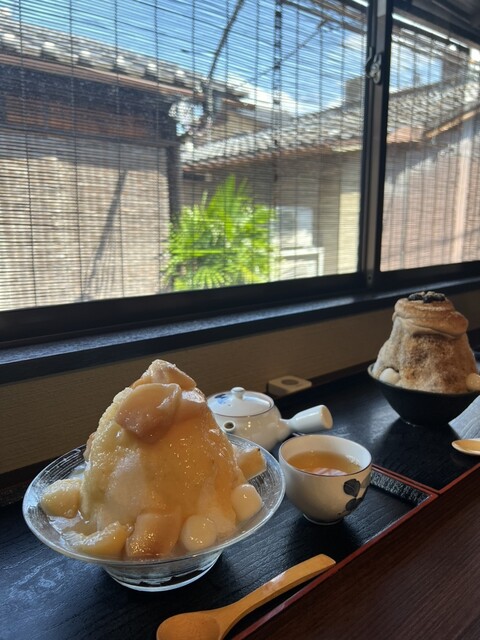 祇園の真ん中なのにお客さんが少なく落ち着いて甘味を堪能できました。抹茶のかき氷ですがエスプーマの部分がさっぱりしていて、あんこの甘みが引き立っています。かき氷の中にほうじ茶のゼリーが入っていて最後まで...