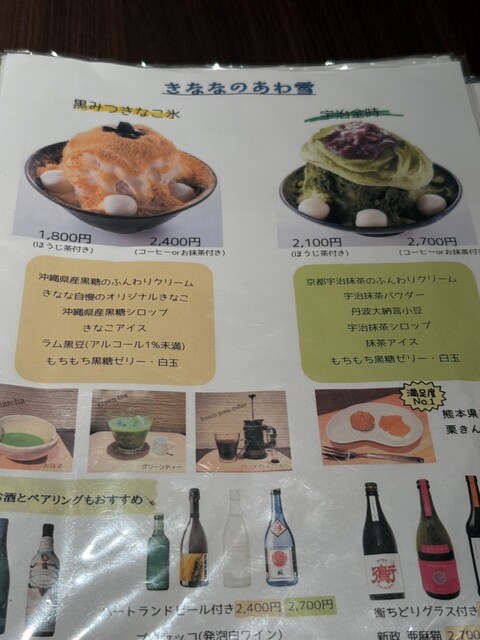 『できたてきなな』『きななのかき氷(黒みつきなこ』をいただ...