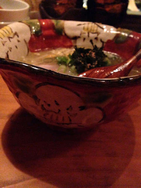 (2015年5月再訪) くわはたさんで、がっつりニクニクした後は~、 約2年ぶりに予約してMICHIYAさんへ=3 フルーツカクテルは相変わらずの充実とコスパ♪ ちょいとラメソのお値段はあがったけどf(^3^; お魚メヌーの充実ぶりはさすがヤン♪ ちなみに、この日のラメソは、千年鯛とハチビキのアラから出汁をとったそうな。 じわ~っと溶けだした脂もウマシ! やっぱり飲んだ... 詳細を見る