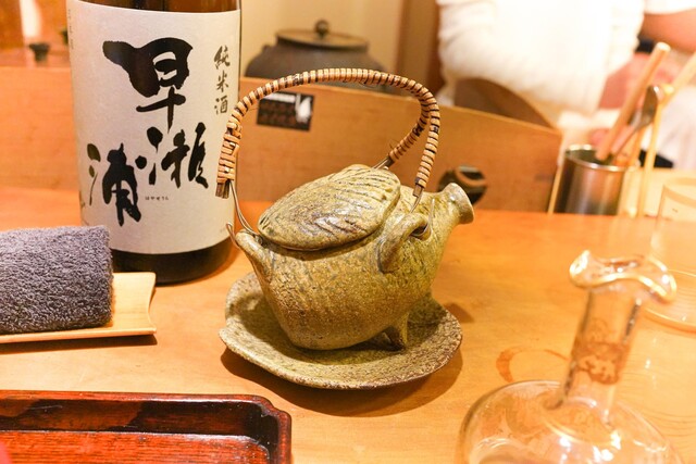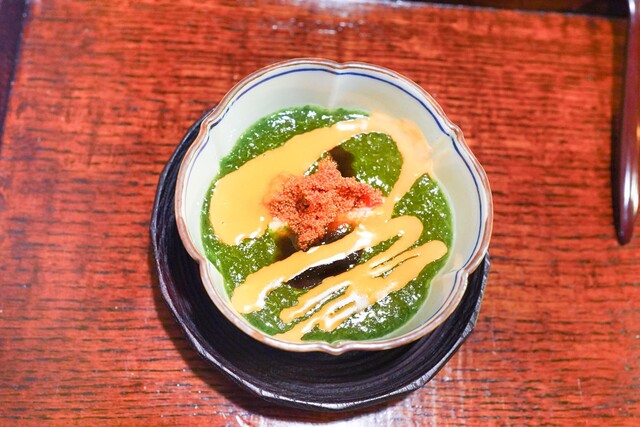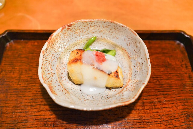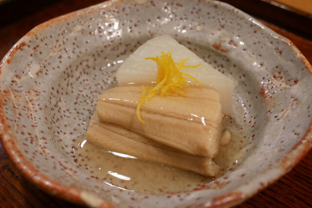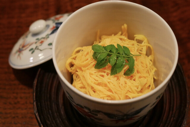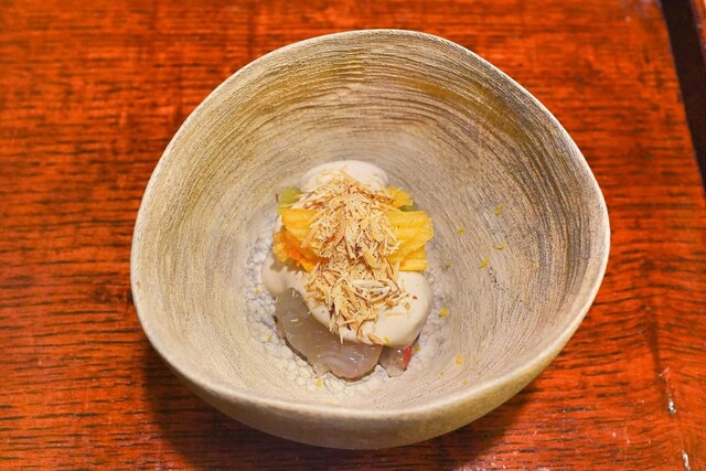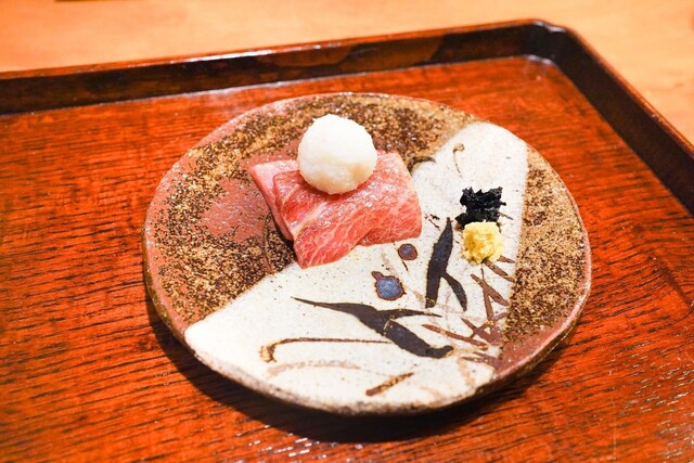 祇園の現代的な景観にも馴染む古い一軒家。和の意匠が光る古民家を利用した空間で饗されるのは、大渡氏ならではの発想から生まれた、いわば地の利を生かした料理だ。京都の水との相性を考え、鰹節ではなく“まぐろ節”で出汁をひくことで、鰹節には出せない上品な味わいを実現。京野菜や季節の食材がその出汁を吸えば、素材本来の旨みが際立つ一品へと進化する。食する者の繊細な味覚を呼び覚ます、丁寧な日本料理に陶酔したい。